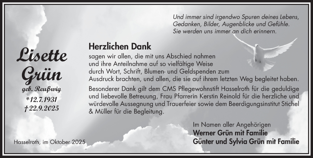 Hier finden Sie alle Traueranzeigen aus der Zeitung, die bisher für Lisette Grün erschienen sind. Weitere Traueranzeigen, die in der Zeitung erscheinen, werden hier ebenfalls aufgelistet