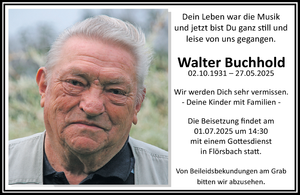 Hier finden Sie alle Traueranzeigen aus der Zeitung, die bisher für Walter Buchhold erschienen sind. Weitere Traueranzeigen, die in der Zeitung erscheinen, werden hier ebenfalls aufgelistet